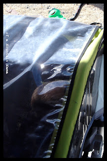 – The weather cover is amazing (and apparently has recently gotten even better.) On our Cougar 2, there is a screen for bugs, small rocks, etc. that is built into the carrier and is used every time we use the stroller. There is also an optional “winter shield” that we pull over when skiing or on cooler days. I just saw a newer version that had zippers to make the “winter shield” more weather proof (ours just has velcro on the bottom and wind can definitely sneak through the sides.)