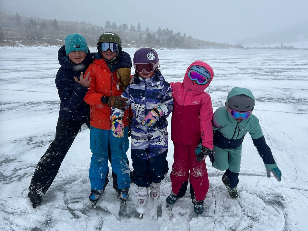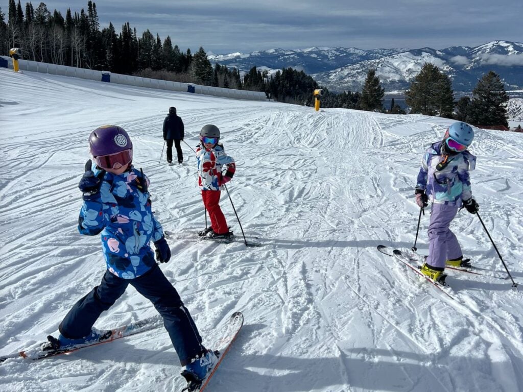 Amelia’s kids ski in the Posio jacket and the Tieten.